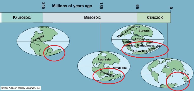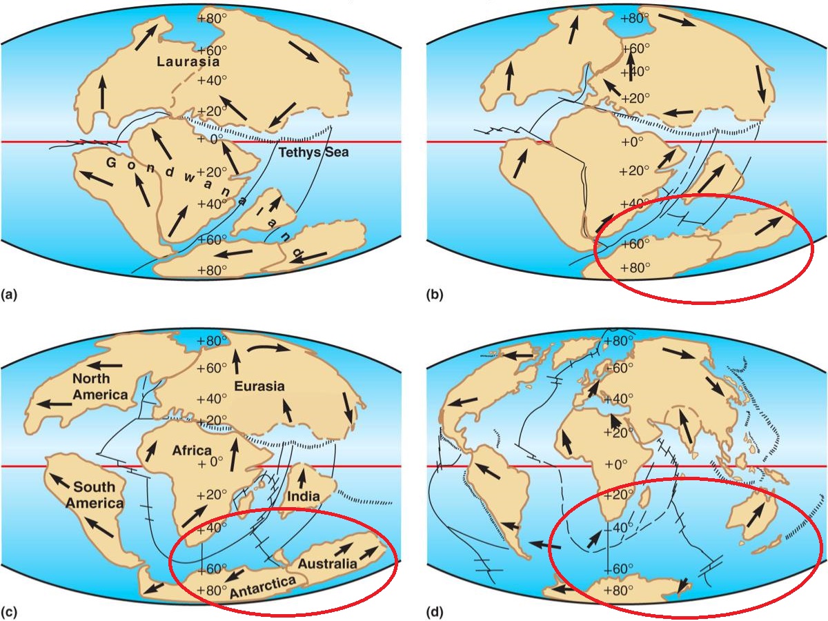 Gondwana; Antarctica and Australia in particular.