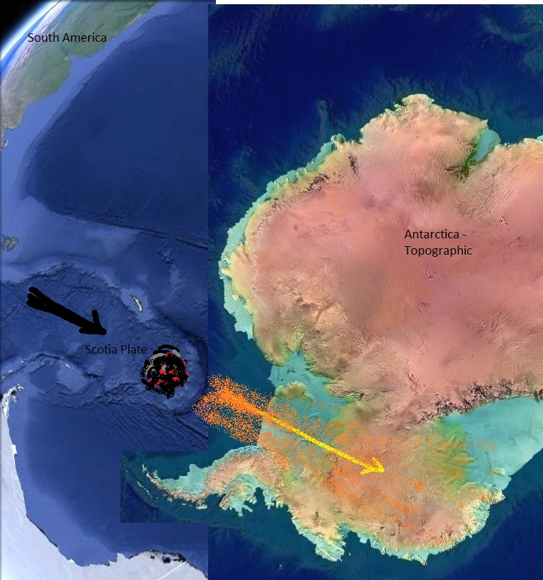 I remain curious because I see the Scotia Plate as clearly being an impact crater. I also see that at one time, 250 million years ago, that very same impact crater would have been situated exactly on the western border of what is now Antarctica. And, from the research I’ve read, the paths and “speed” of India and Australia are still very much in dispute – so much so, that I am willing to join the fray!